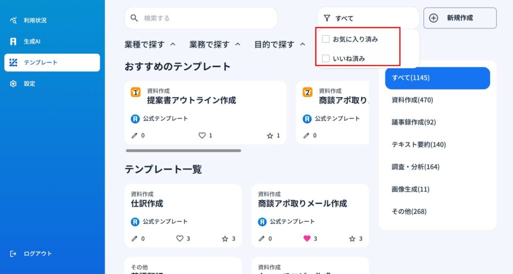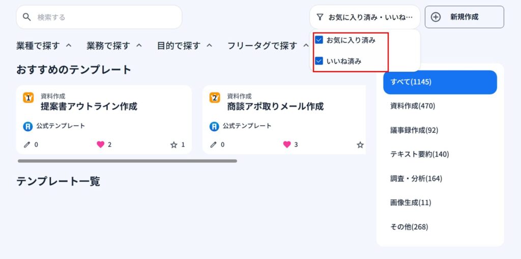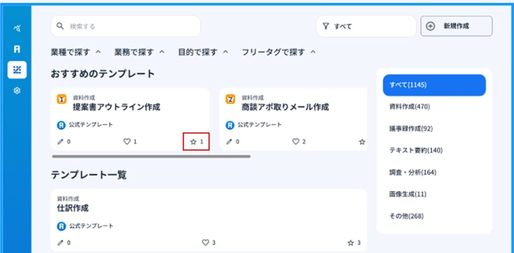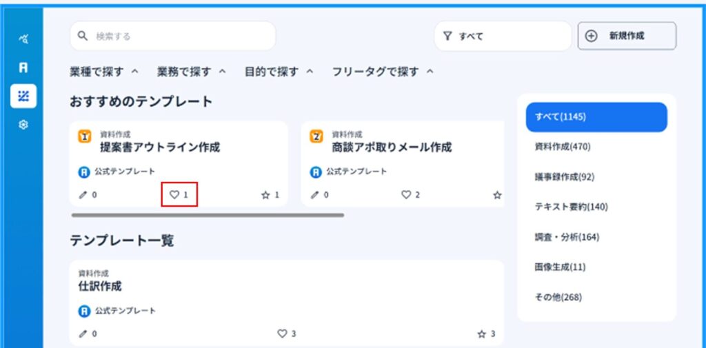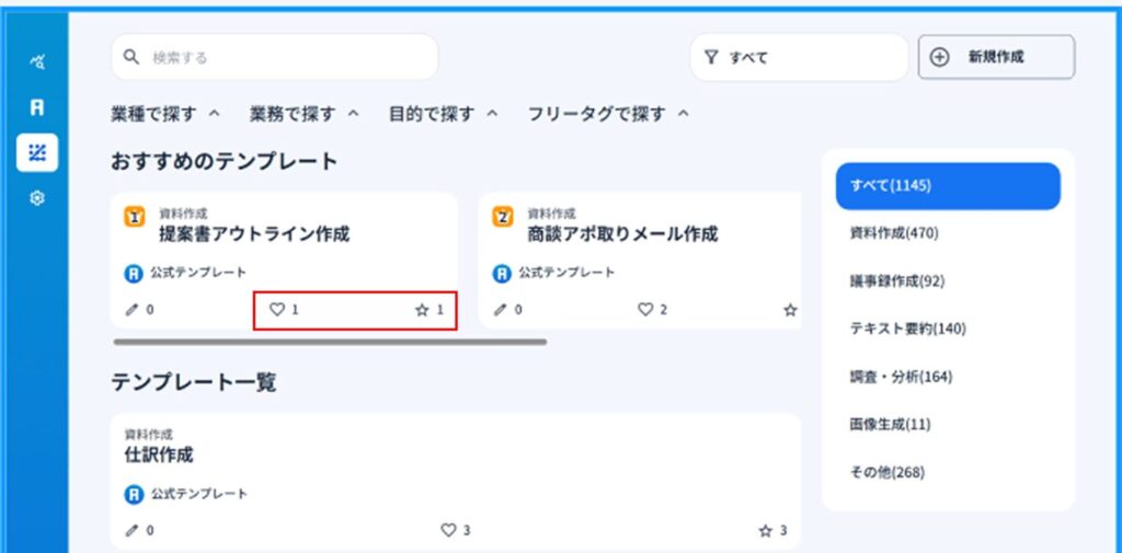 1)テンプレートに対してお気に入り機能、いいね機能機能を使うことができます。
