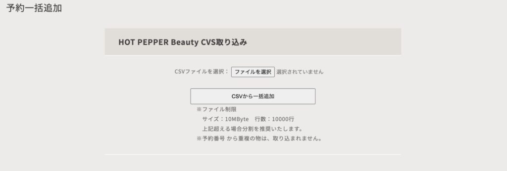 ※ Hot pepper beautyからCSVデータを取り込む方法については別外部ツールが必要になります。