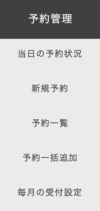 ページ上部にあるメニューで「予約管理」をクリックすると、下記のようなプルダウンメニューが開きますので、「予約一覧」をクリックしてください。