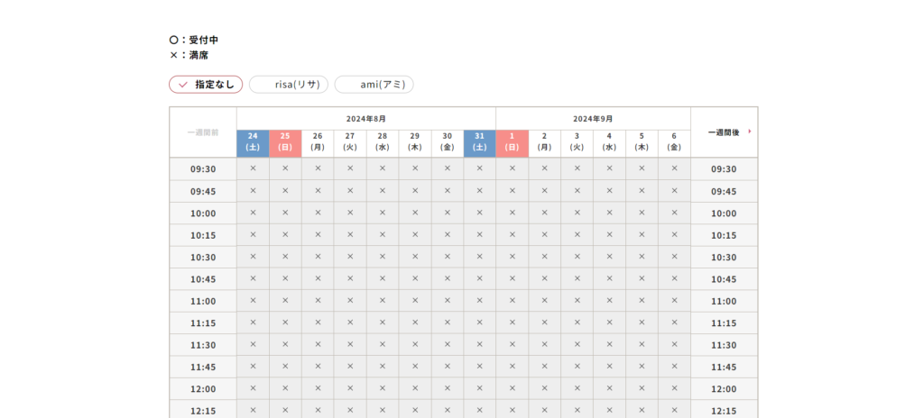 例)15分の設定(予約フォーム側での表示)