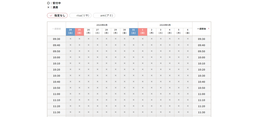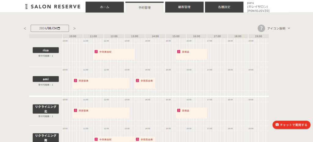 ※この設定はキレイモードのみで可能です。ヘアサロンモードには予約受付時間枠の設定はありません。
