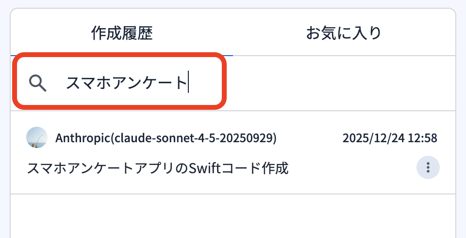 3)『🔍検索する』のボックスからキーワードで履歴を検索することができます。