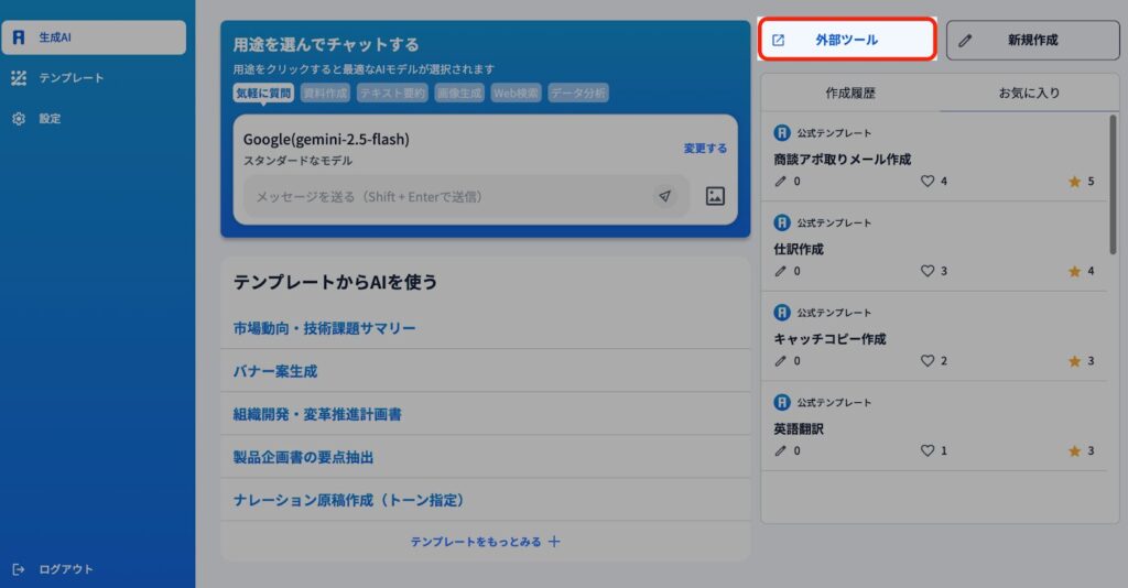 1)AiCOMPサービス外の生成AIのリンクがあります。ニーズに合わせてご利用ください。※サポート対象外