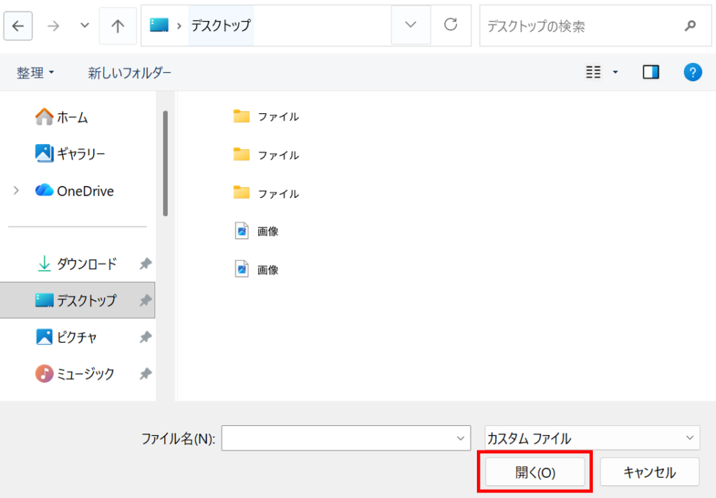 3)アップロードしたい写真またはファイルを選択し「開く」を押す。
