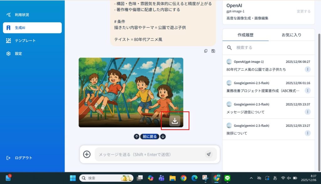 9)保存ボタンを押すと、生成した画像のダウンロードができます。