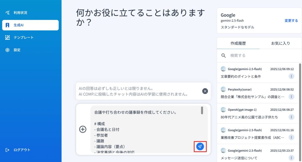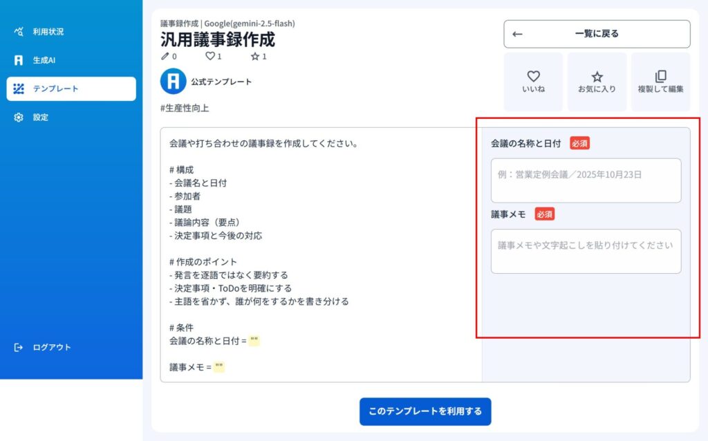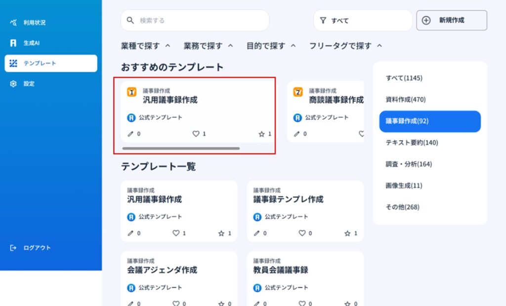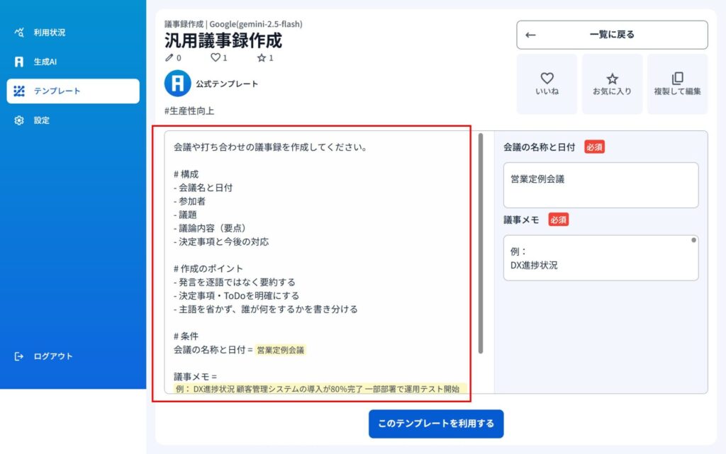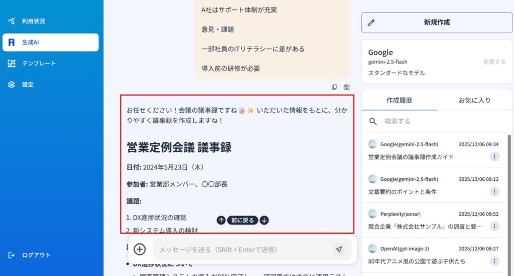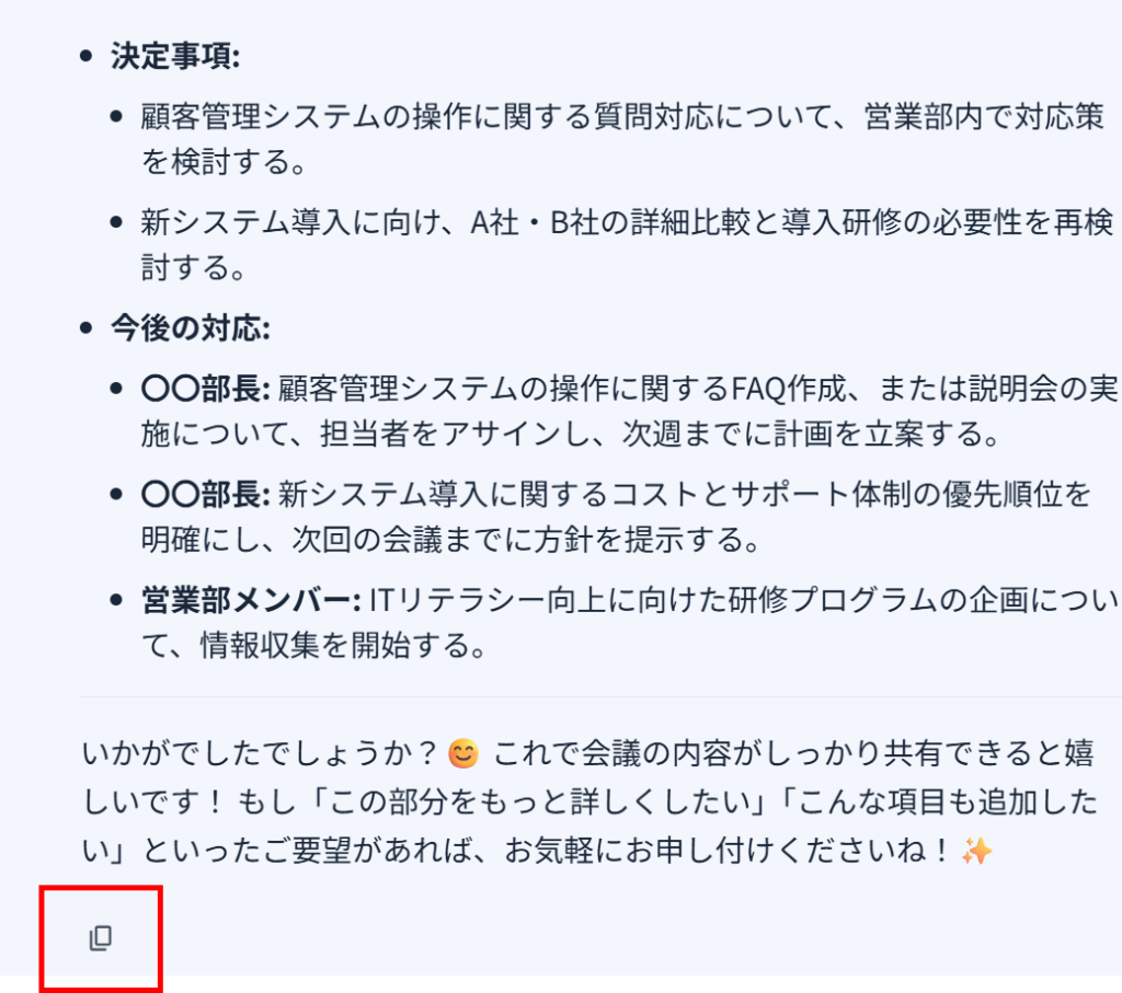 9)コピーボタンを押すと、議事録の内容をコピーできます。