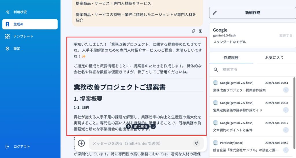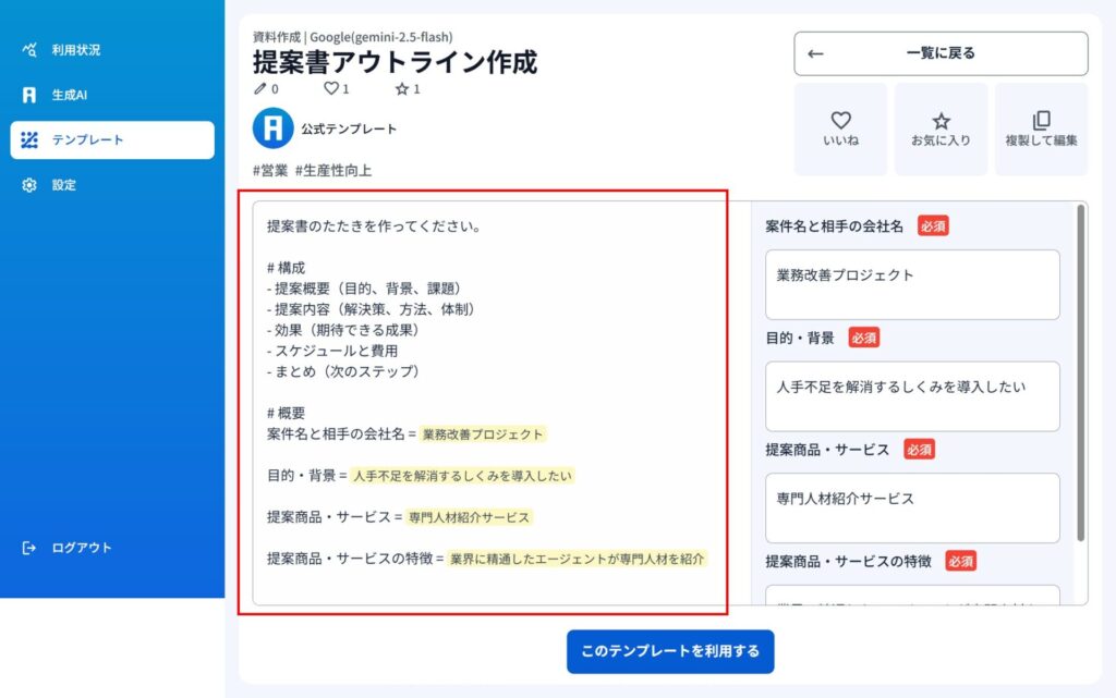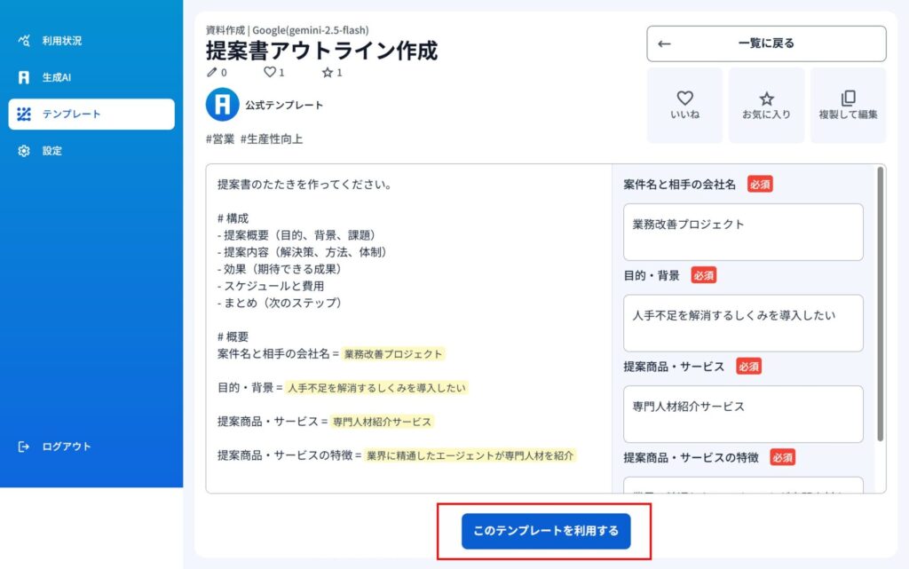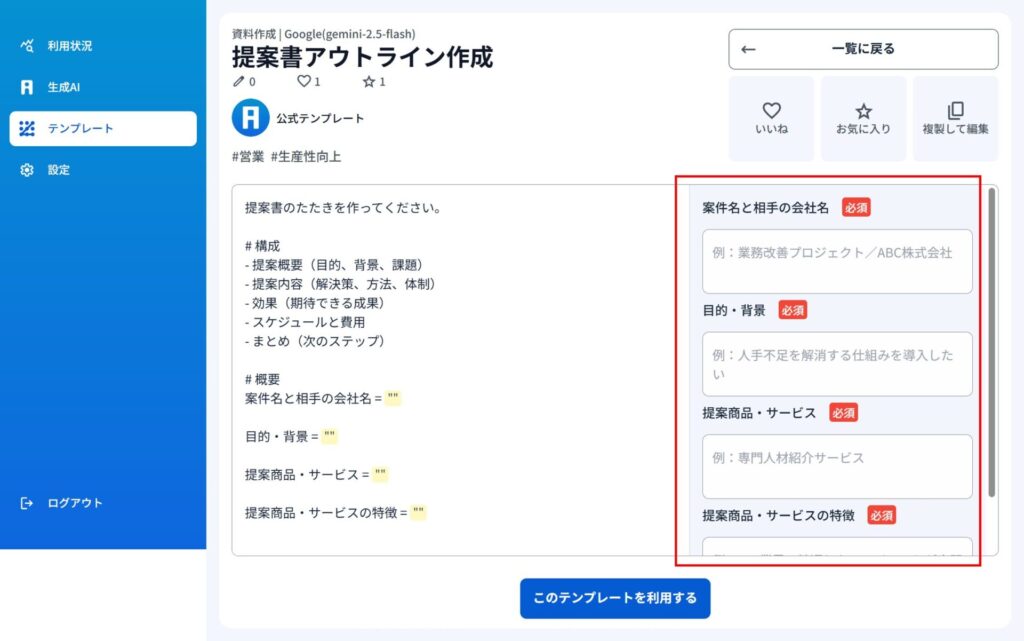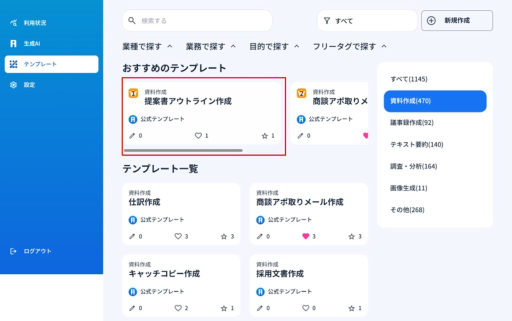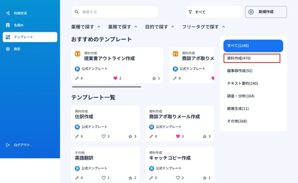 1)テンプレートを選択して資料作成ができます。